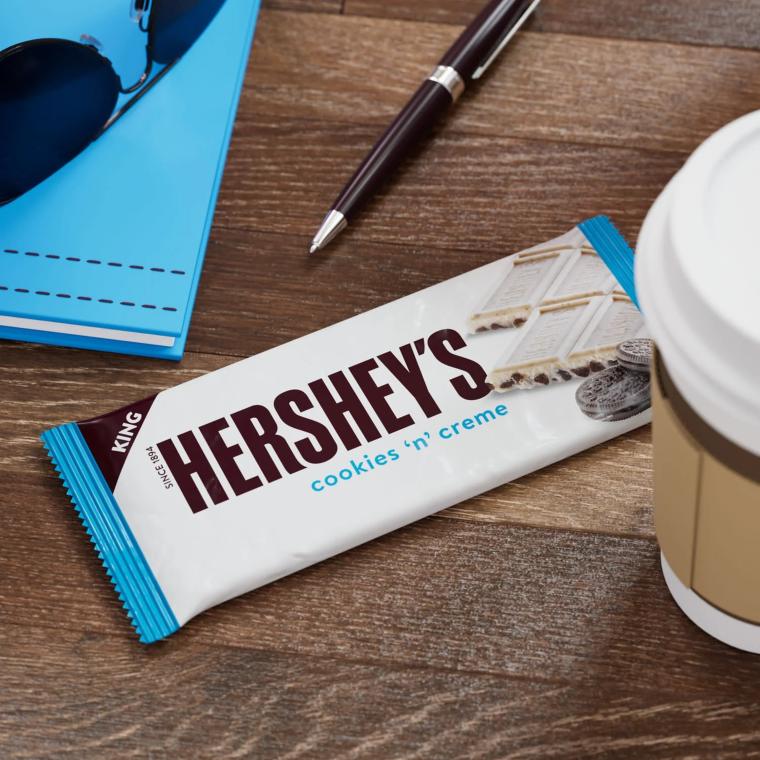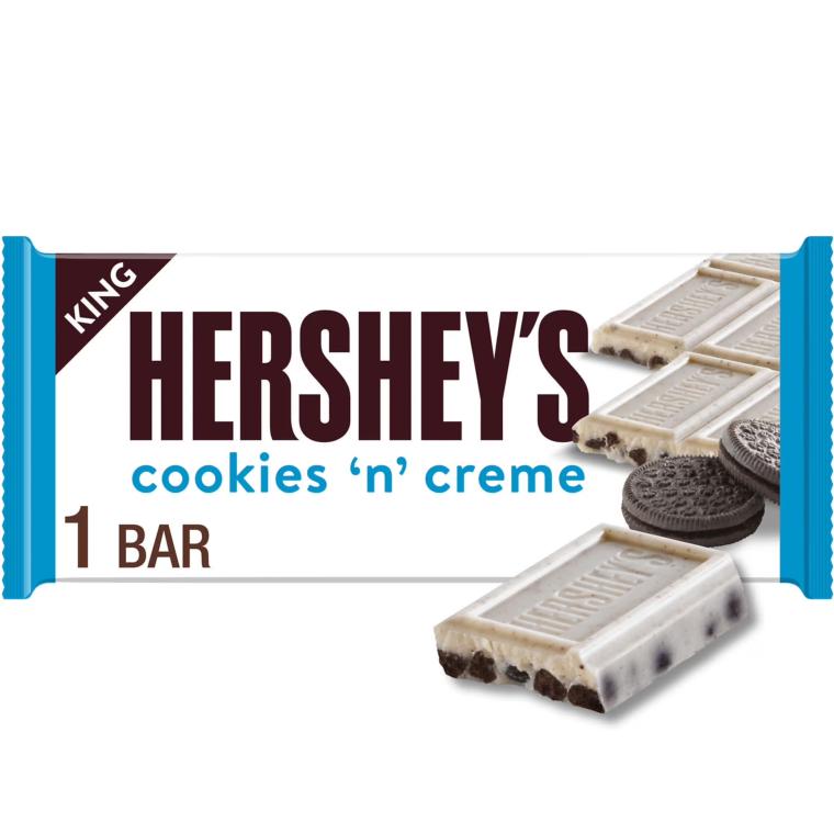 La saveur Cookies 'n' Creme est une combinaison populaire de morceaux de biscuits au chocolat et de crème. Cette saveur est souvent utilisée dans les desserts tels que les glaces et les milk-shakes. Aux États-Unis, la saveur Cookies 'n' Creme est très appréciée pour son goût unique et sa texture croquante. La barre Hershey's Cookies & Crème capture parfaitement cette saveur, offrant une expérience gourmande à chaque bouchée. Cookies & Crème est la meilleure traduction en français que l'équipe a trouvée. Elle permet de conserver l'authenticité de la combinaison de ces délicieuses saveurs.